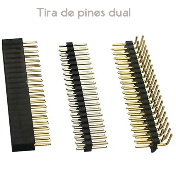 Al igual que la tira de pines singular, esta nos permite una mayor opción de pines de contacto entre módulos. También los hay con angulo de 90 grados.